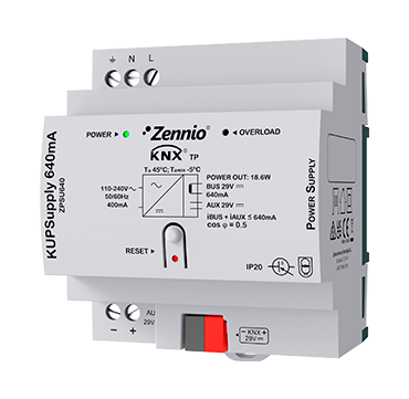 Fonte de alimentação universal KNX 640 mA com saída auxiliar