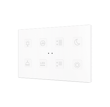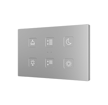Interruptores capacitivos de policarbonato com ícones retroiluminados personalizáveis. São modelos de 4, 6, 8 e 10 botões com funções configuráveis e ícones retroiluminados, que regulam o seu brilho com o sensor de luz ambiente e escurecem quando o utilizador não é detectado pelo sensor de proximidade. Instalação em caixa de mecanismo standard europeu, italiano, australiano ou americano.