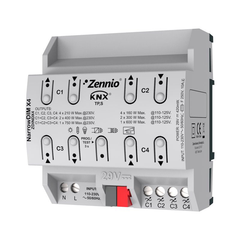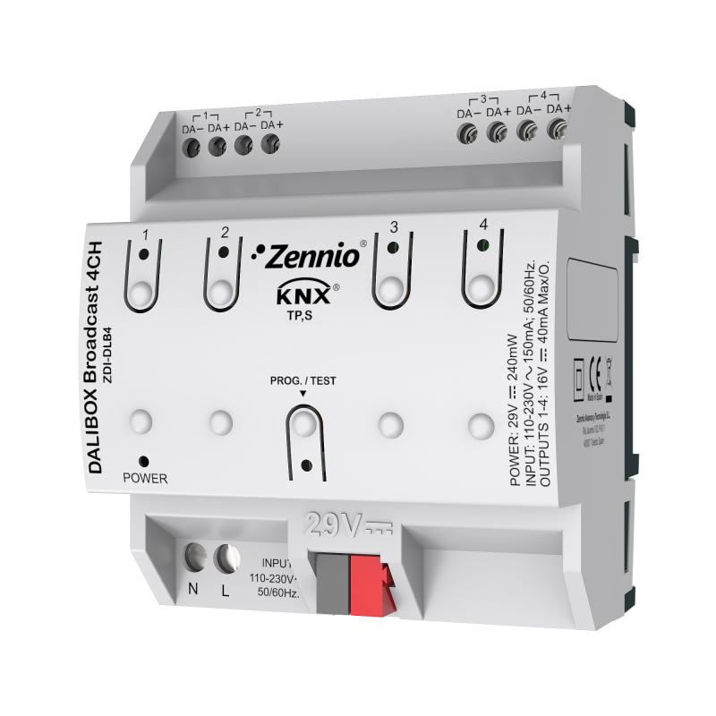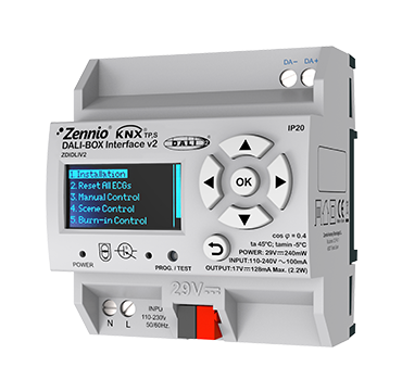 Interface KNX - DALI transmitindo até 4 canais de até 20 balastos por canal